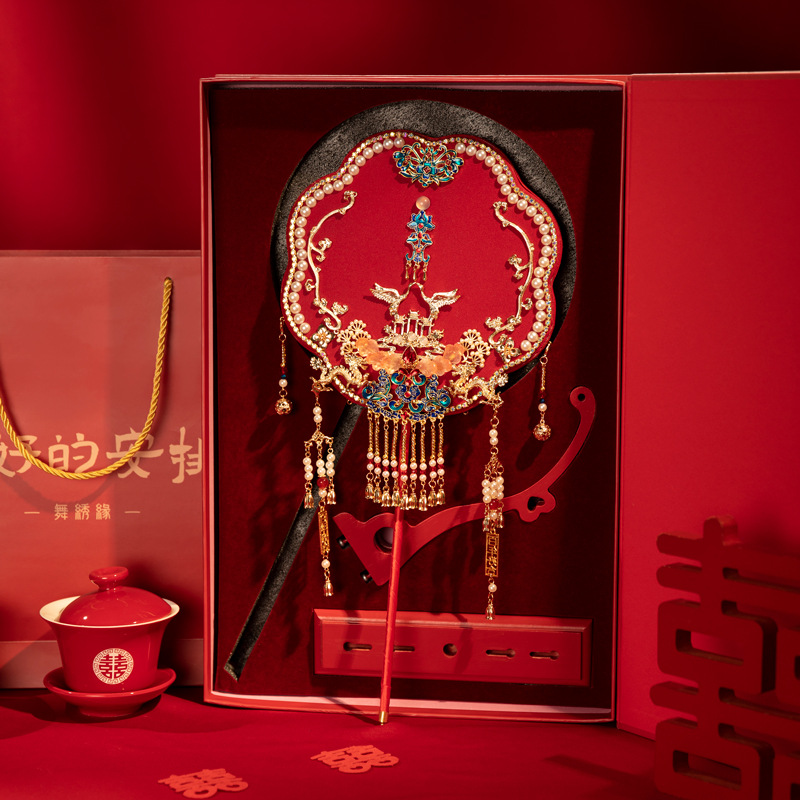 Wu Xiuyuan 团扇花嫁結婚式赤い団扇素材パッケージ diy 中国秀和フェイスカバーウェディングファン完成品