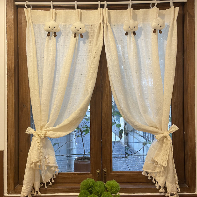 和風ガーゼカーテン綿麻カーテンショートカーテン寝室キッチンパーティションカーテンドアカーテンハーフカーテンレトロクリームスタイルフレンチカーテン