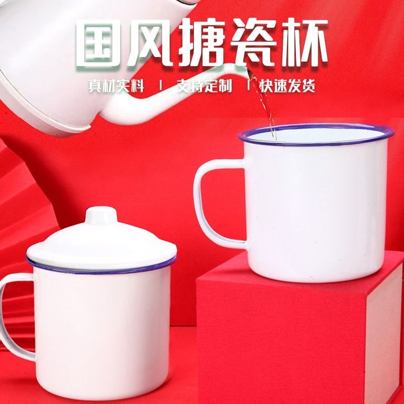 昔ながらの蓋付き琺瑯カップ、ノスタルジックなレトロなティーカップ、マグカップ、大容量の純白カップ、ホテルの串