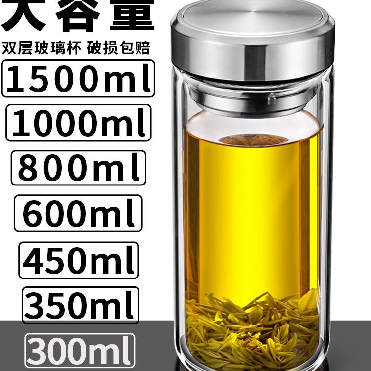 大容量ガラスメンズ二重層断熱防爆ウォーターカップポータブルティーカップフィルター女性ティーカップ家庭用なし