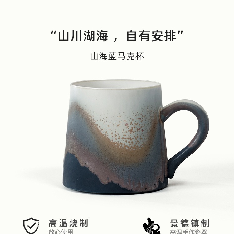 浅山シリーズ 山と海の青いマグカップ 中国風景徳鎮陶器マグカップ 見た目も素敵な蓋付き