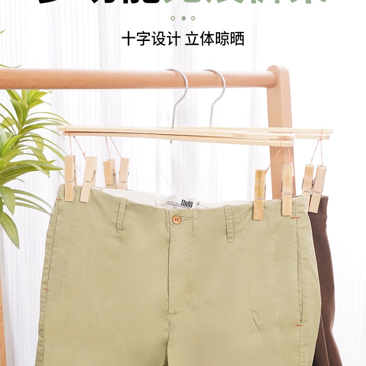 裤架裤夹竹衣架家用无痕衣架挂衣晾衣夹十字四夹子晒裤子毛竹