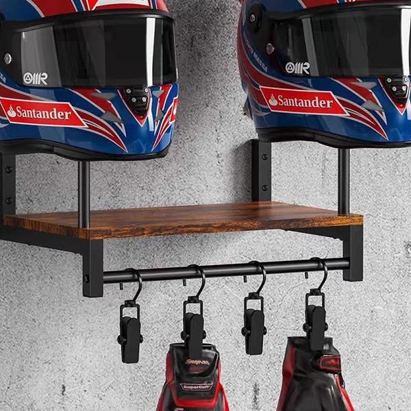 ヘルメットラックを壁に掛けるオートバイヘルメットラック壁掛け収納ラック木製レザーギア収納ラック