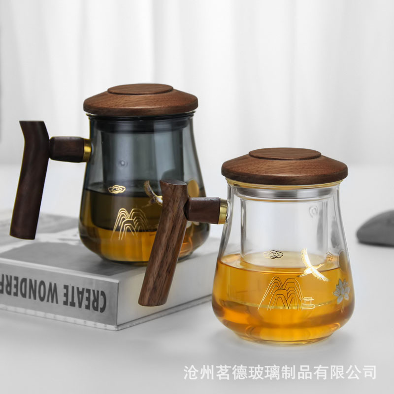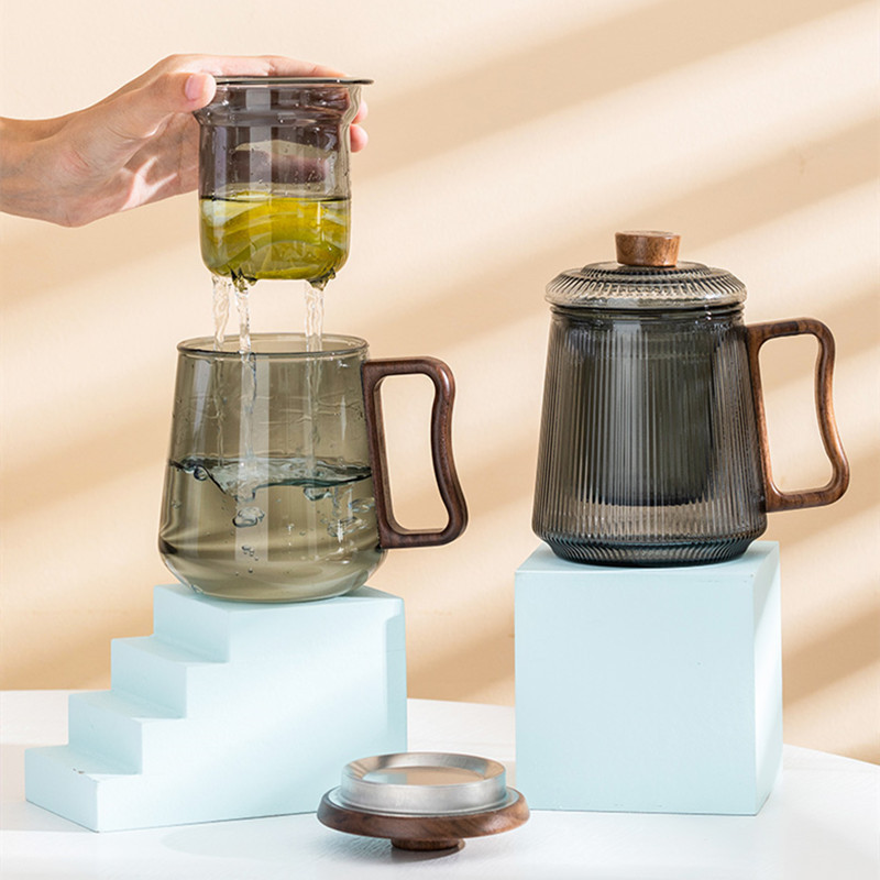 メーカー卸売りガラスティーカップ蓋付き茶水分離ティーカップ家庭木はオフィスカップをティーカップに入れる