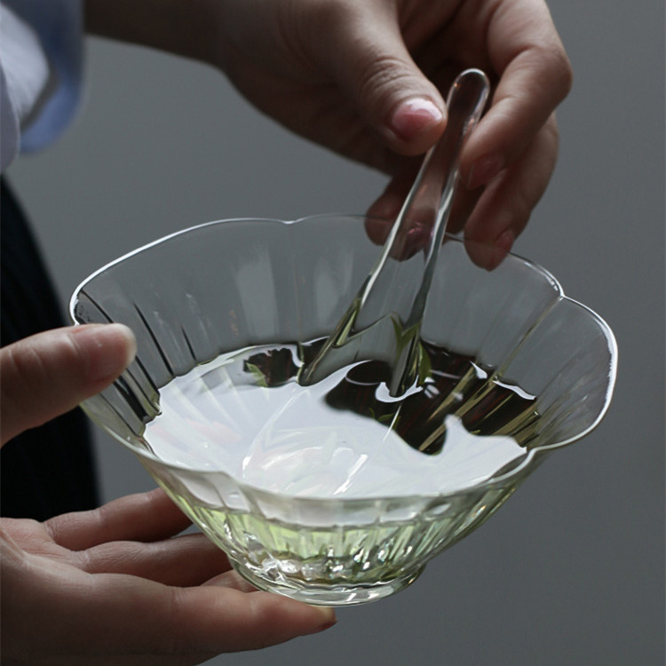 メーカー卸売り高ホウ素シリコンガラス電子レンジ加熱宋花びら乾砲碗茶杯茶碗茶碗