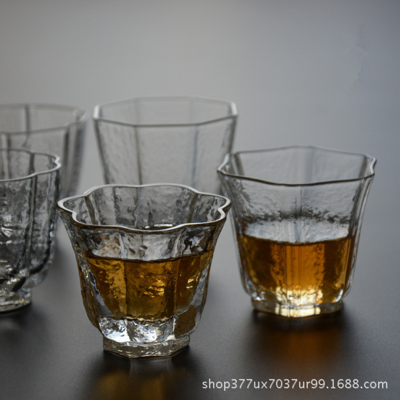 メーカー卸売り日本式花びらハンマー模様透明ガラス品茗杯主人杯工夫カップ子