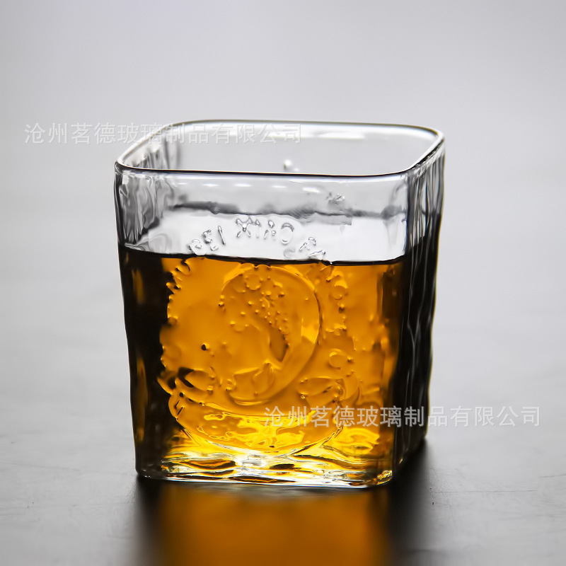 樹皮紋四方ジュース飲料カップ高ホウ素シリコンガラス単層カップ家庭用牛乳カップオフィスビールカップ