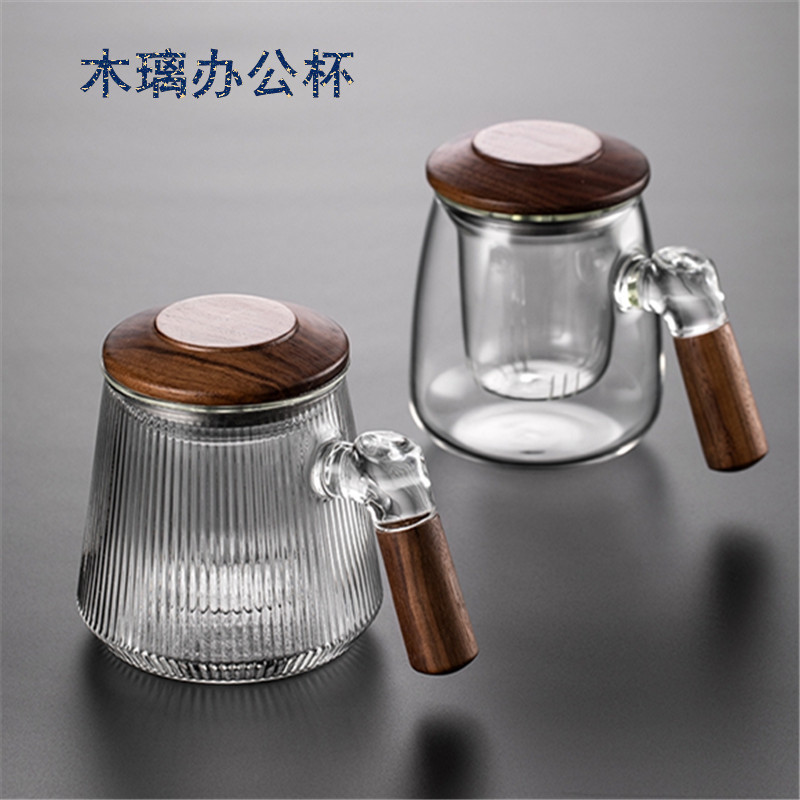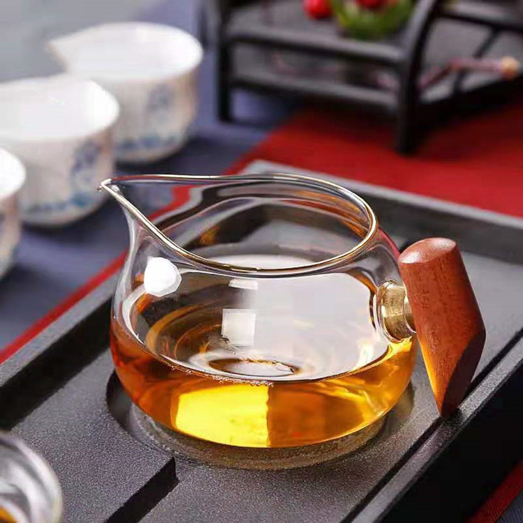 ガラスの公道の杯の日本式の高級な手作りの木は杯の創意の工夫の茶器の透明なお茶の杯をお茶の海に分けます。