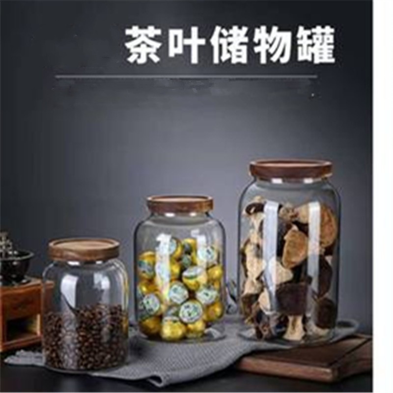 大型透明木蓋ガラス瓶乾燥果雑穀花茶生薬茶葉サンプル展示貯蔵物陳皮缶