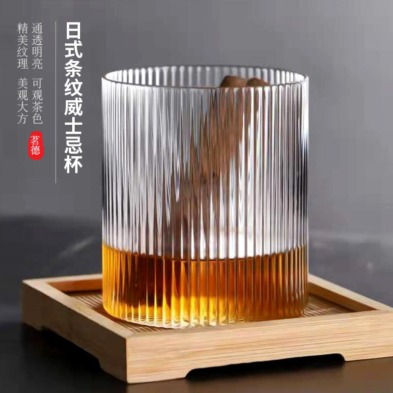 日本式ウイスキーカップ厚手グラス樹皮縦縞グラスレトロ日本式ガラス洋酒カップ