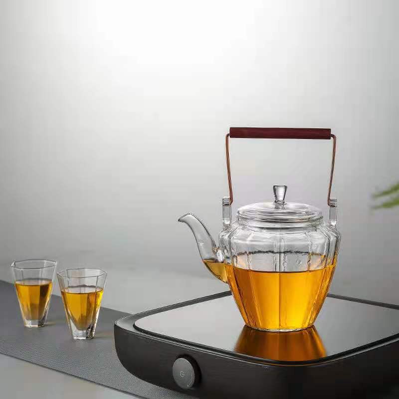 高ホウ素シリコン紅檀木取っ手ダイヤモンド花ティーポット厚いガラス家庭用電気陶炉湯泡ティーポット