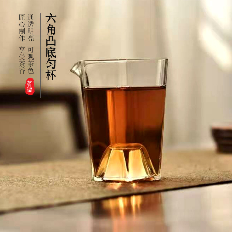 六角凸底公杯高ホウ素シリコン薄皮茶海日本式分茶器入茶均一公杯