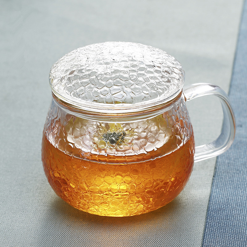 オフィスガラスフィルターカップ水カップ大容量家庭用緑茶紅茶花茶蓋付きお茶カップ