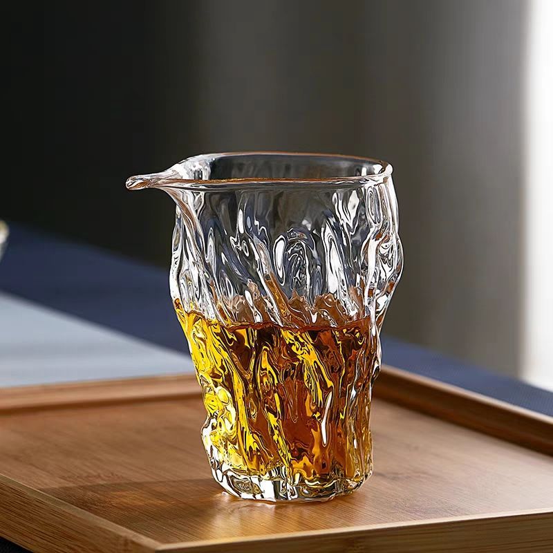 メーカー卸売りハンマー目紋ガラス公道杯厚手耐熱和風魚紋分茶器茶海茶器