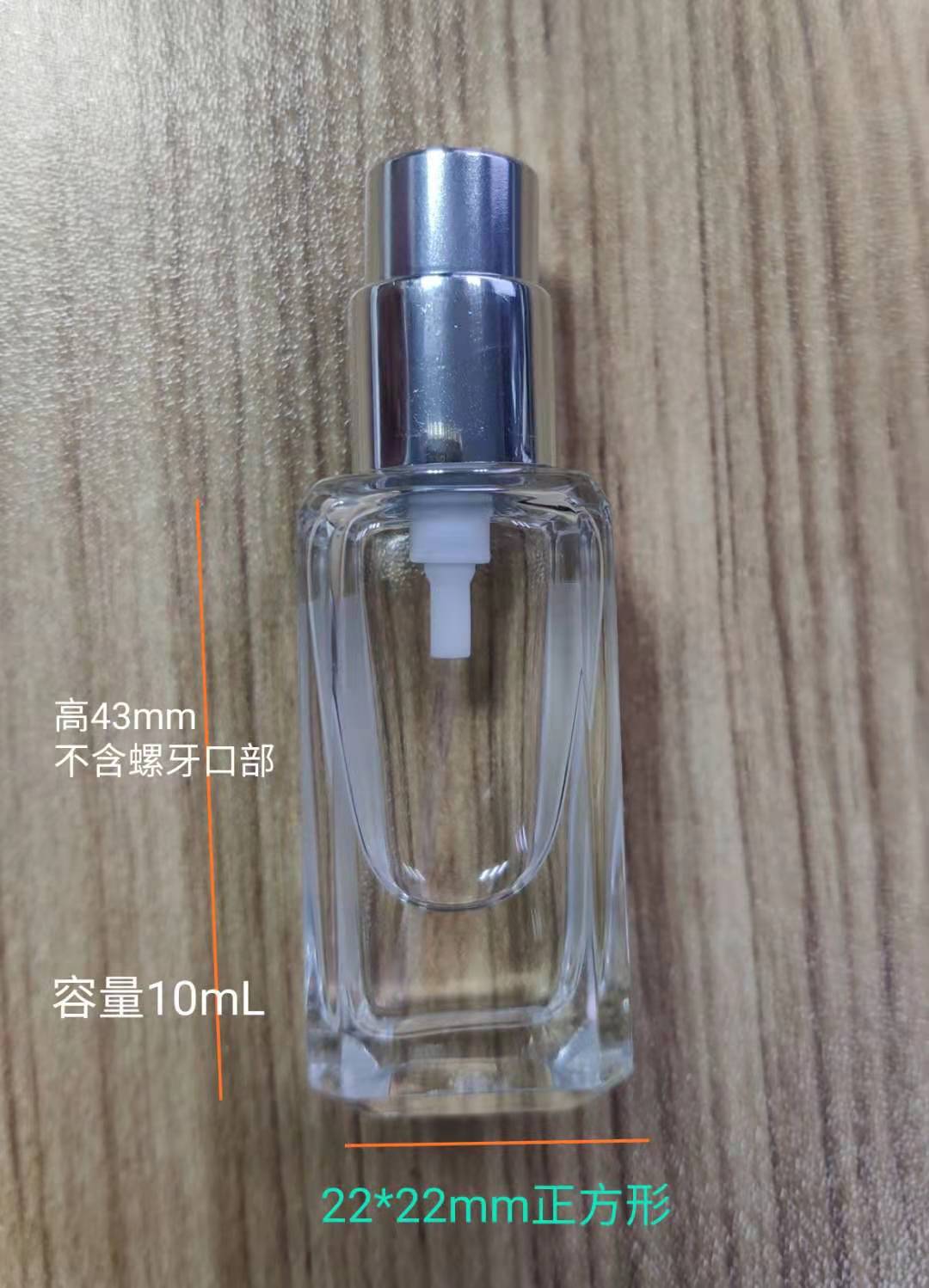 9mlの小さい香水瓶の精油の瓶のセットのガラス瓶の精白の材料の四方の小さい瓶は細い霧のスプレーの瓶を押して携帯します。