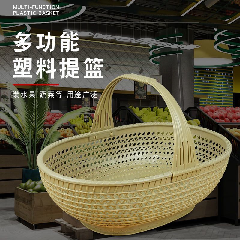 新しい厚みのある 2025 プラスチック野菜バスケットポータブルバスケットフルーツバスケット手作り新しい食料品や果物の家庭用織り