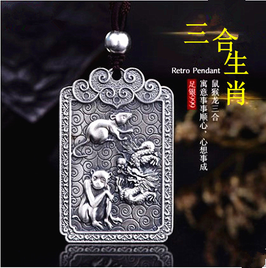 十二生肖三合貴人ペンダント卸売り男女999純銀本命年輸送保平安足銀ペンダント