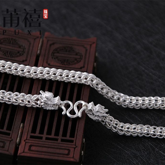 純銀999龍頭チェーン卸売 純銀メンズ太めチェーン 気品あふれるファッショナブルなシルバーネックレス 直販
