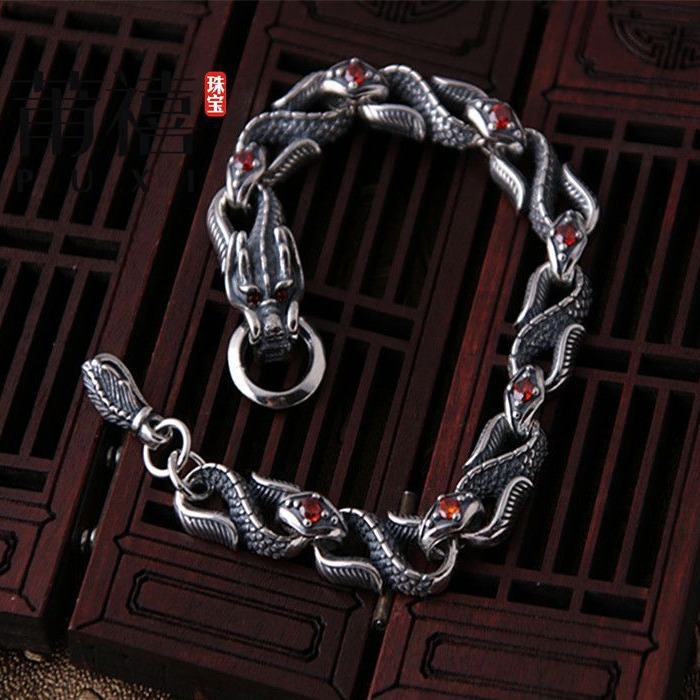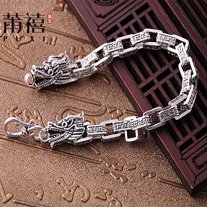 純銀925男式レトロ蛇口ブレスレット卸売り六字真言泰銀覇気ファッション銀ブレスレット