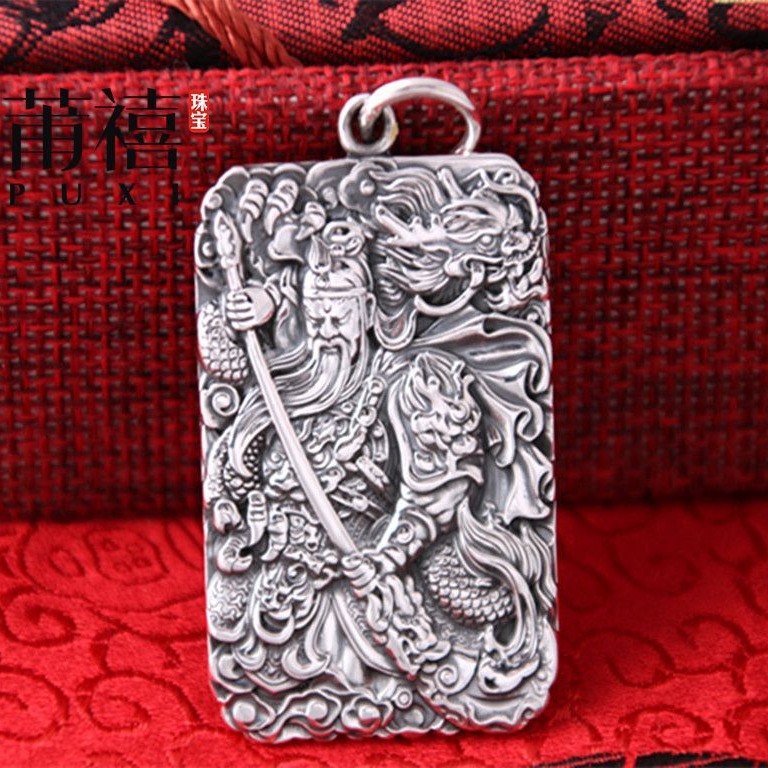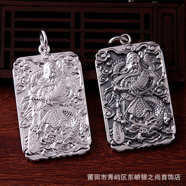 999純銀武財神関公ペンダント卸売り足銀レトロ男性項ペンダント覇気保護銀ペンダント