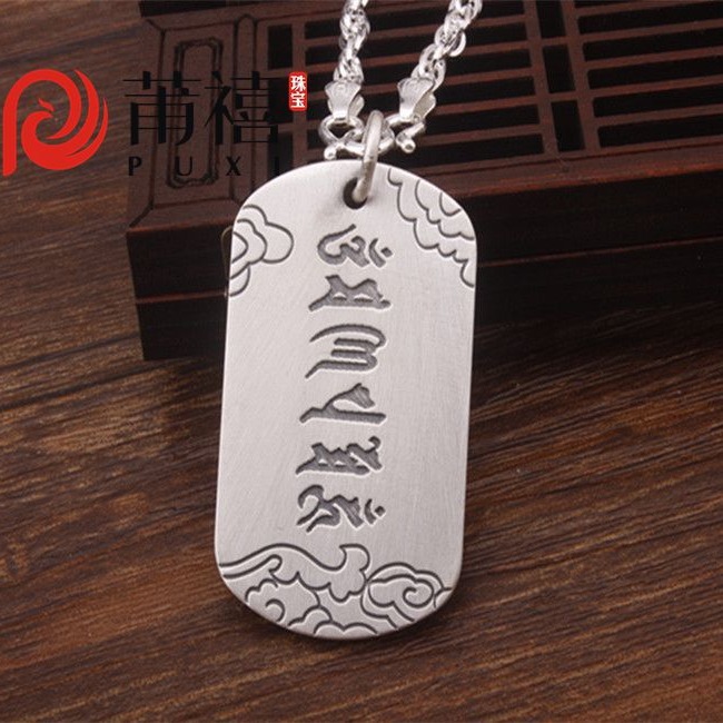 足銀999六字真言吊り札卸売り純銀レトロ男性個性ペンダント泰銀中実保護ペンダント