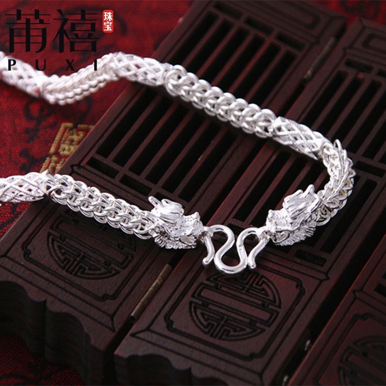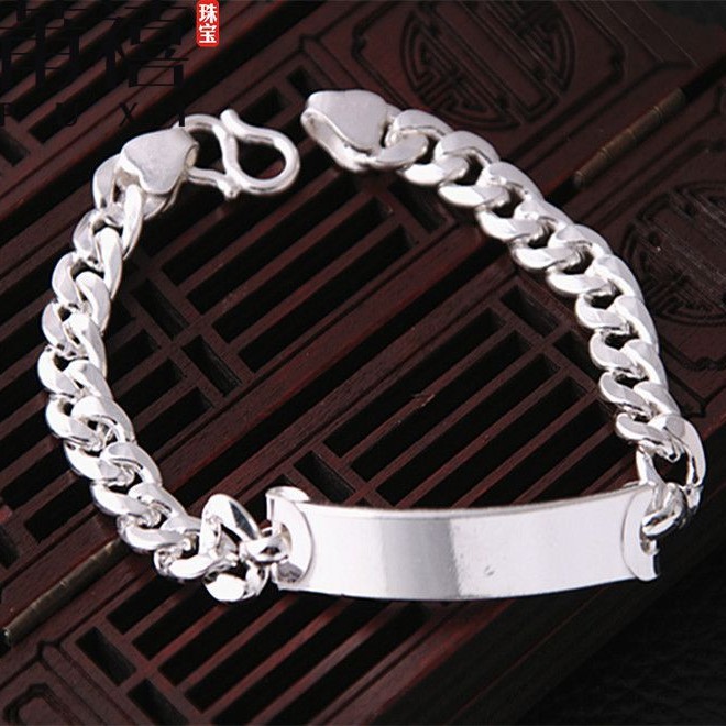 純銀990男性亮面彫刻銀ブレスレット卸売り足銀diy個性双卜間片ブレスレット