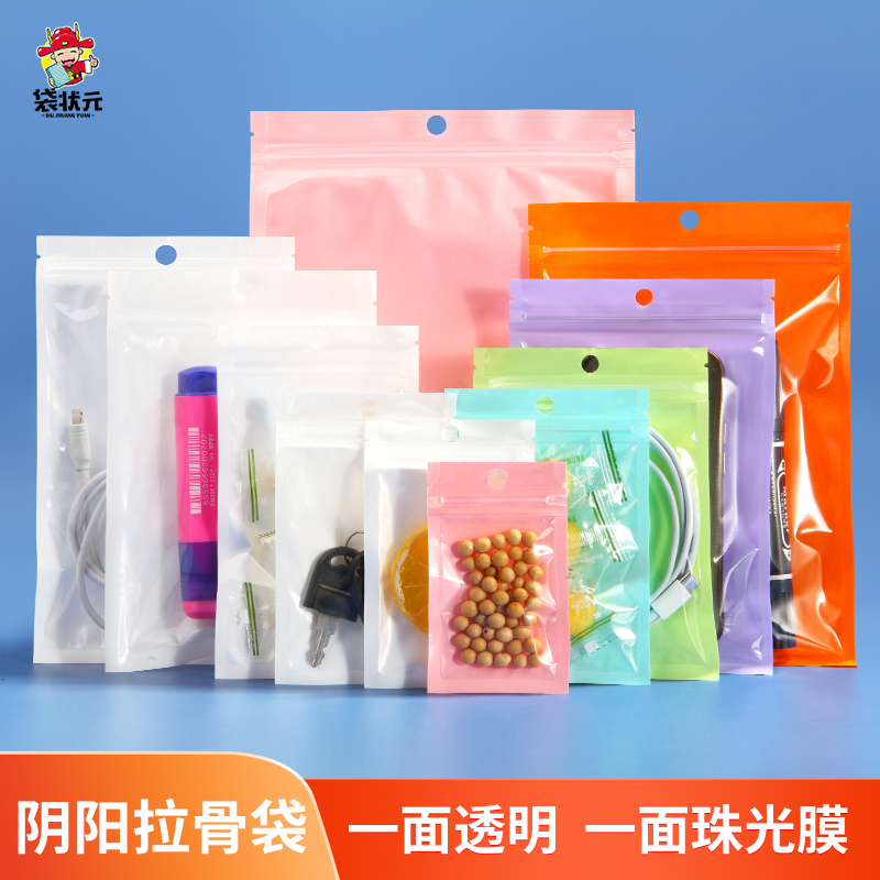 珠光膜陰陽自封袋半透明カラーアクセサリープレゼントバーデジタル包装プラスチック密封口袋