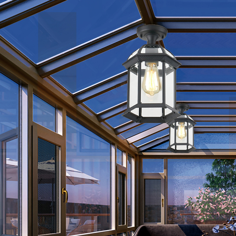 ガラスの陽光の部屋は天井の明かりの屋外の日よけの雨の棚のシャンデリアを吸い込みます。