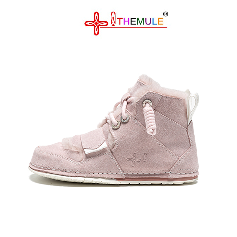 醜い萌え靴の女性の羊の毛皮の一体のフラットピンクの雪の靴とベルベットの厚い底のマンゴーの頭のショートブーツの冬