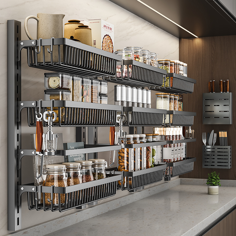 キッチンラック壁掛け式階層調味料ラック多機能壁多層調節可能調味料収納ラック