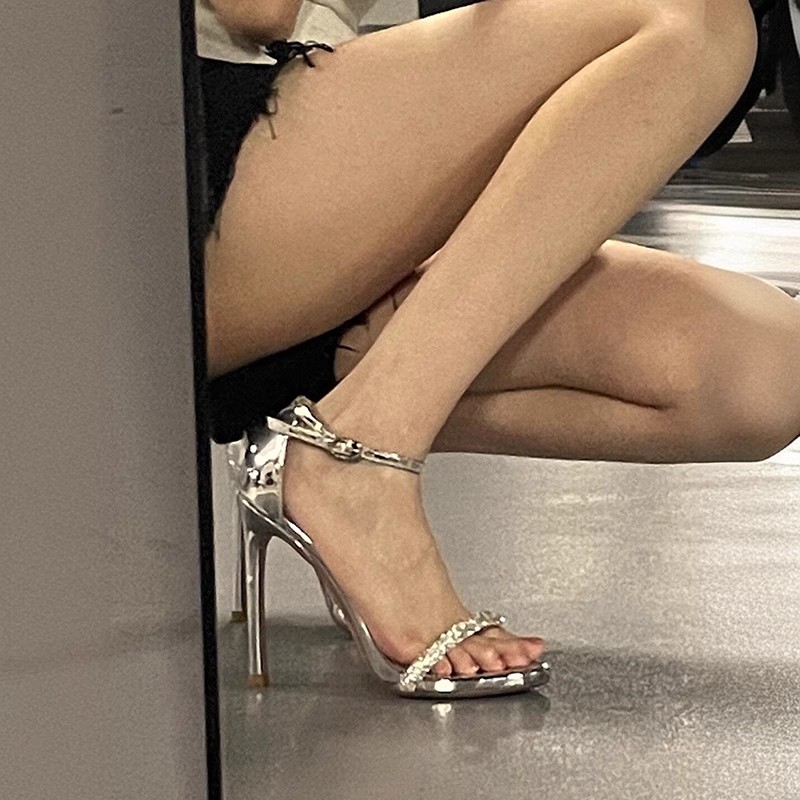 銀色のハイヒールの女性2025夏の新型の一字は細いと厚い底のドリルの気質のお姉さんのセクシーなサンダルの女性を持ちます。