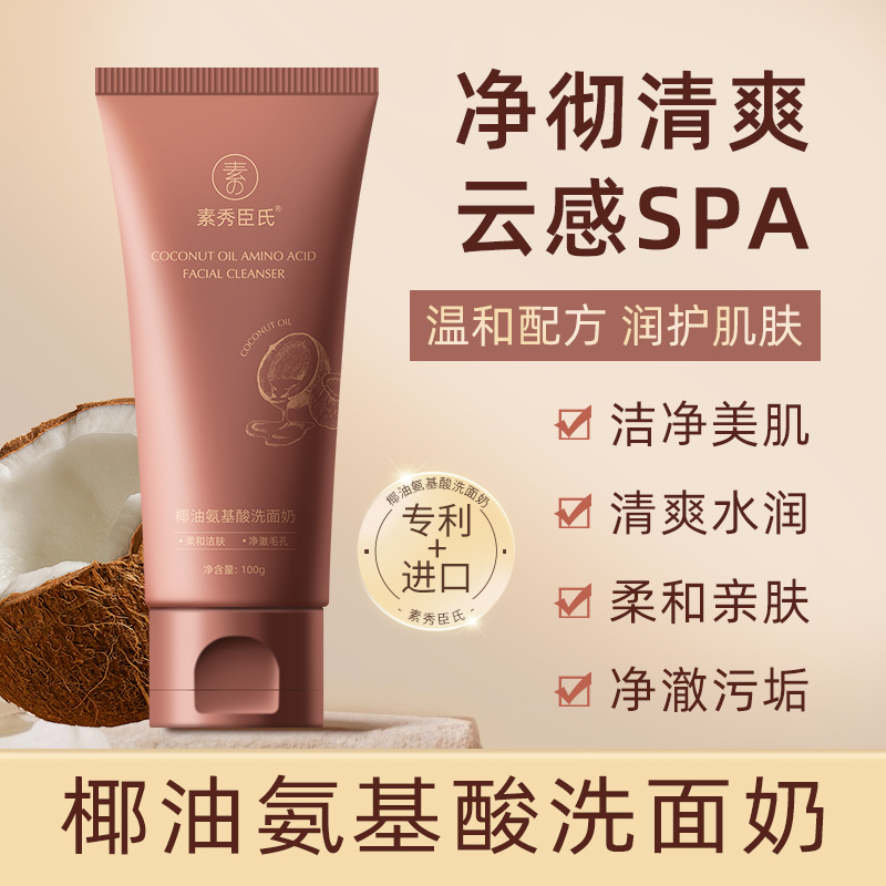 Su Xiuchen のココナッツ オイル アミノ酸洗顔料、ディープ クレンジング、つっぱり感のない濃密な泡の洗顔料、男性と女性に適しています