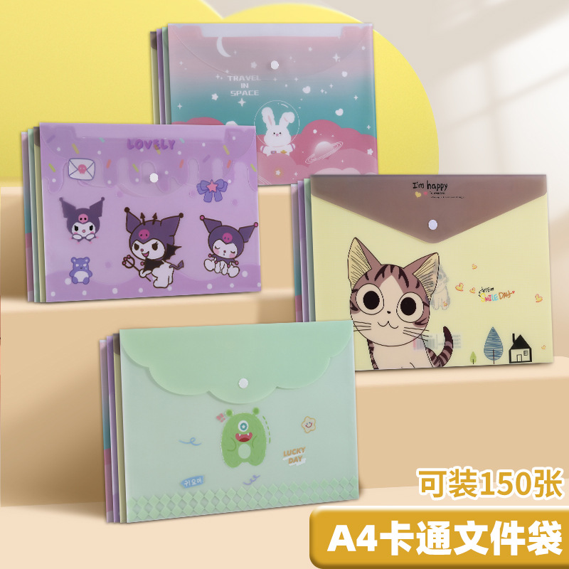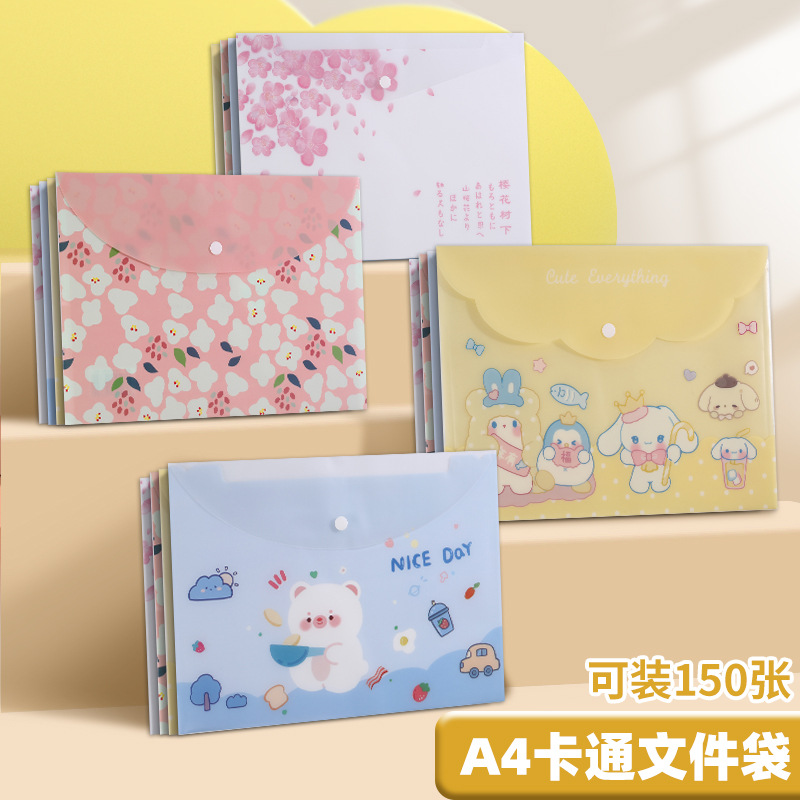 透明プラスチック学生テスト用紙ファイルバッグ A4 スナップかわいいアニメーションオフィス情報収納袋ファイルバッグ