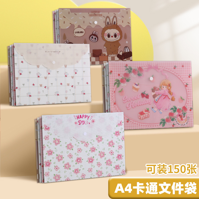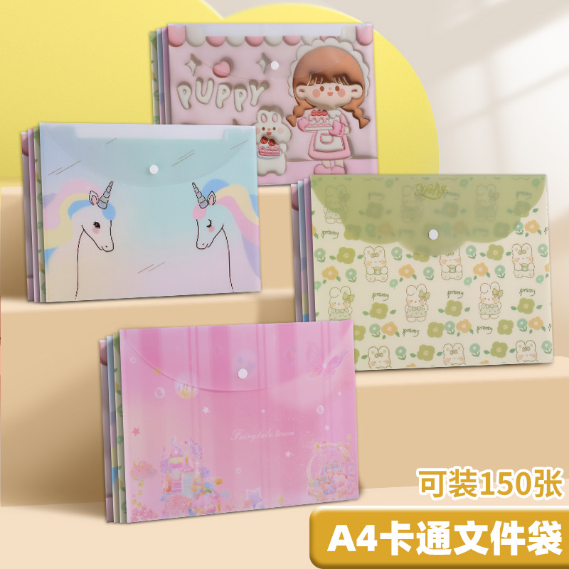 2024新品3d立体印刷プルリングファイル袋A4厚手漫画ppファイル収納袋学生試験巻袋