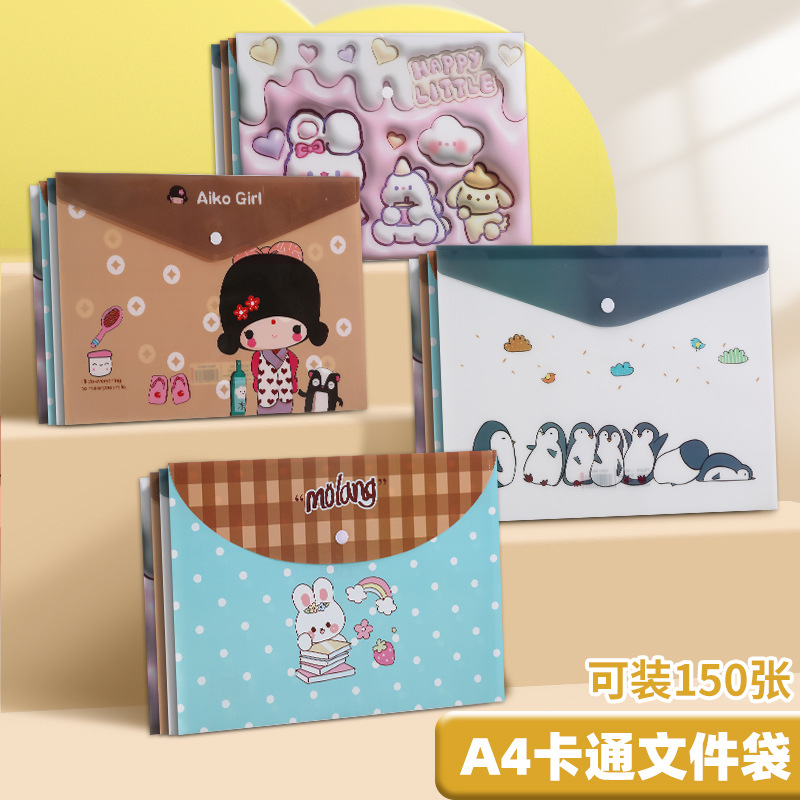 プラスチック防水スナップファイルバッグ学生かわいい A4 漫画テスト用紙情報収納袋厚みのあるファイルバッグ