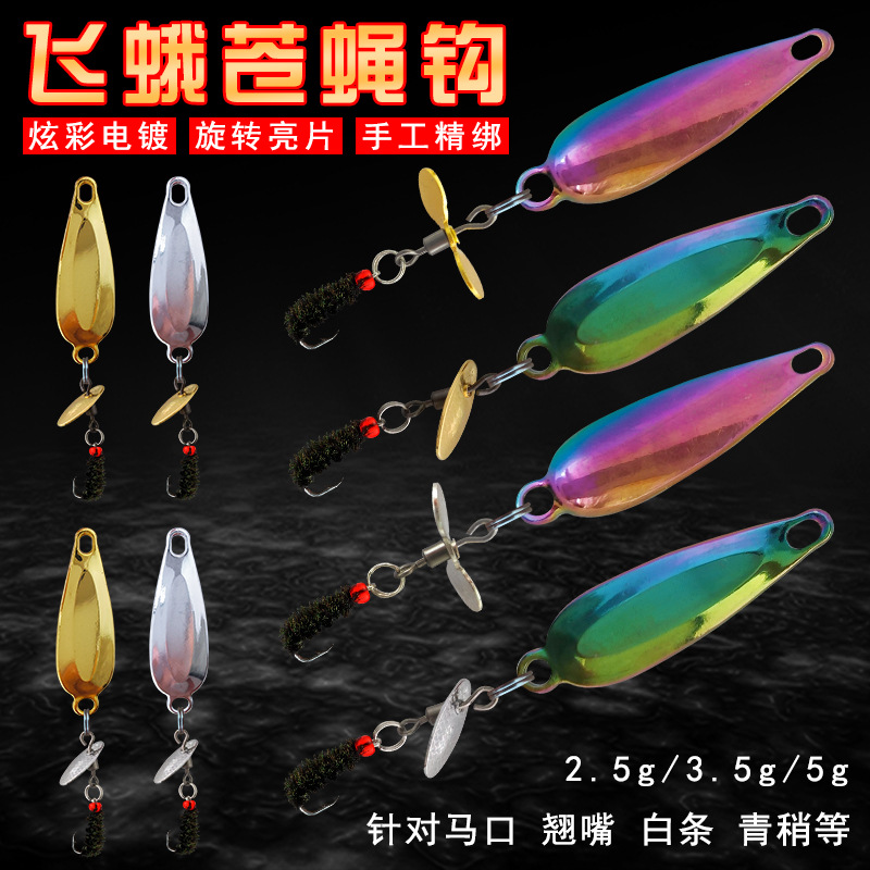 ホット複合スパンコールルアーベイト回転カラフルなスパンコールフェザーシングルフックバーチャルマウストラウトユニバーサルフェイクベイト