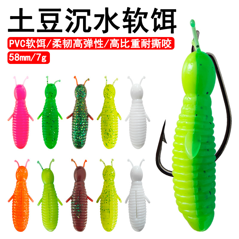 新商品の路亜軟餌高比重緩沈ジャガイモ軟餌は底をまねることをまねて軟虫の偽餌イクラの黒魚をシミュレーションします。