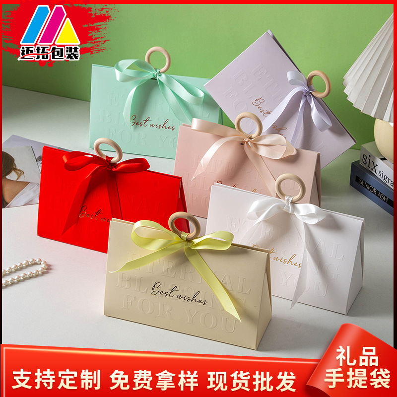 現物お土産紙袋手提げケース一枚式折り畳みシンプルな純色プリント結婚式お土産喜糖ギフトボックス
