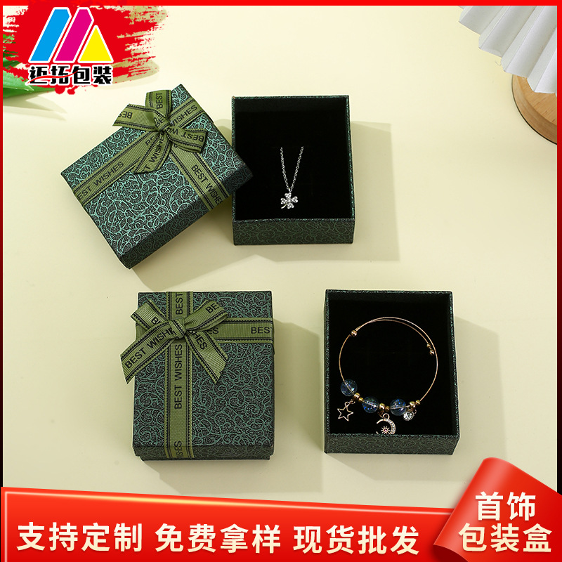 在庫あり 天地蓋ジュエリーボックス 蝶結びネックレスリングアクセサリー包装箱 ダークグリーン柄イヤリング