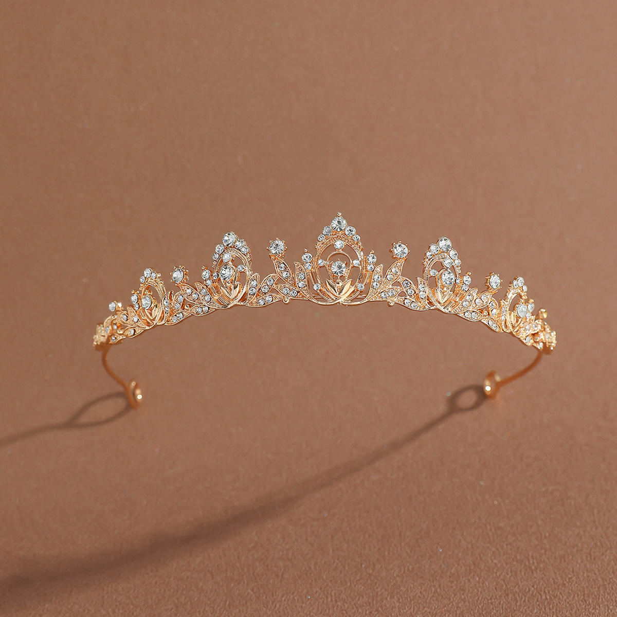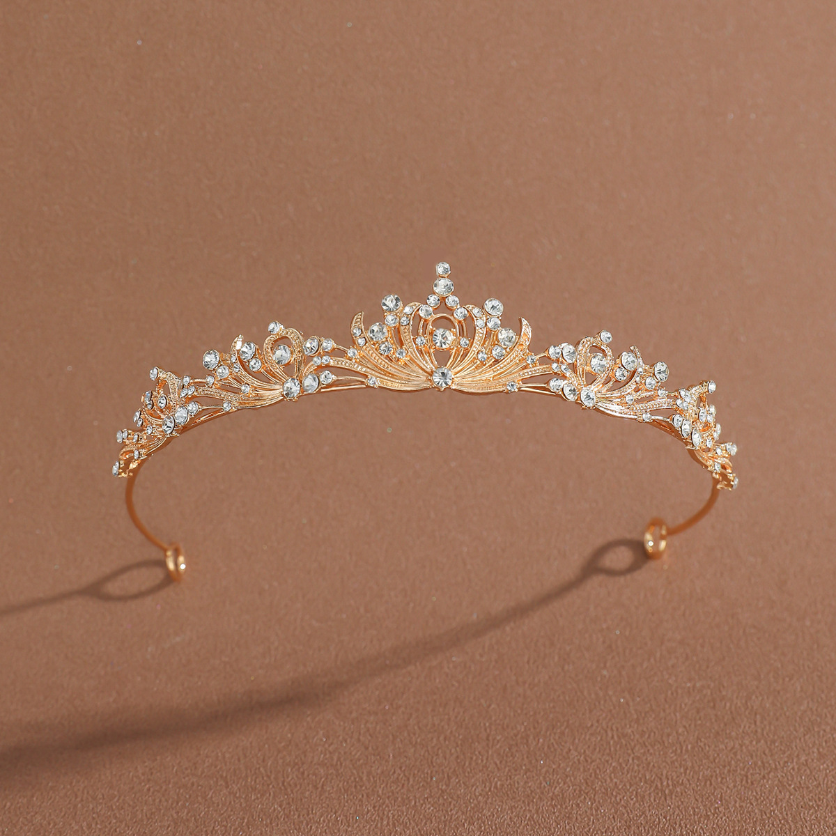 クロスボーダーブライダルクラウンフレンチヘッドバンドクリスタル合金クラウンウェディングヘアスタイルティアラプリンセス誕生日ラインストーンヘアアクセサリー