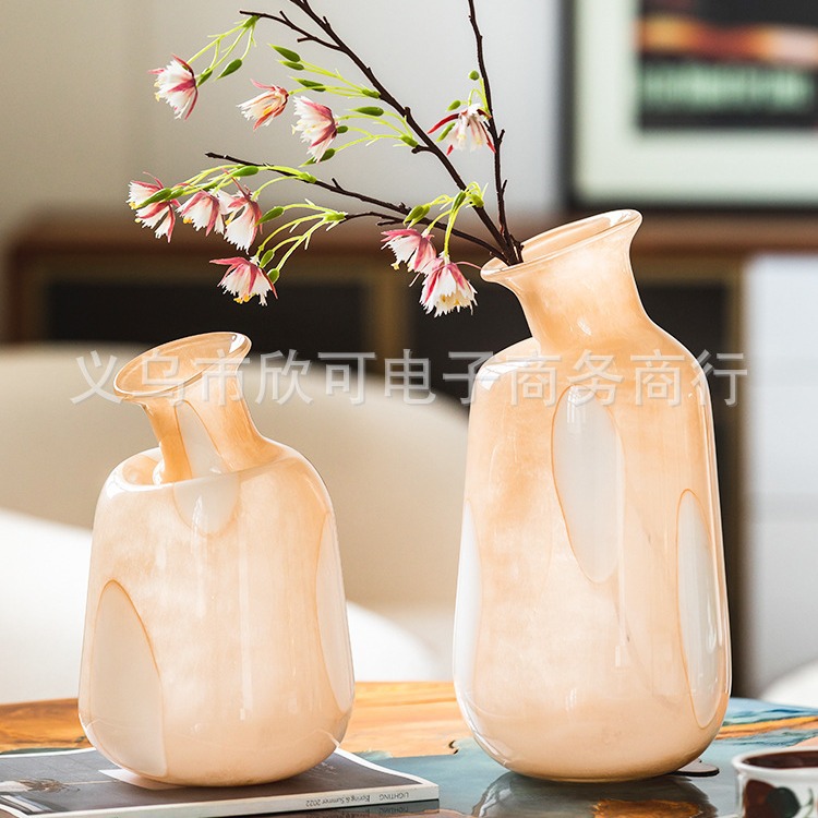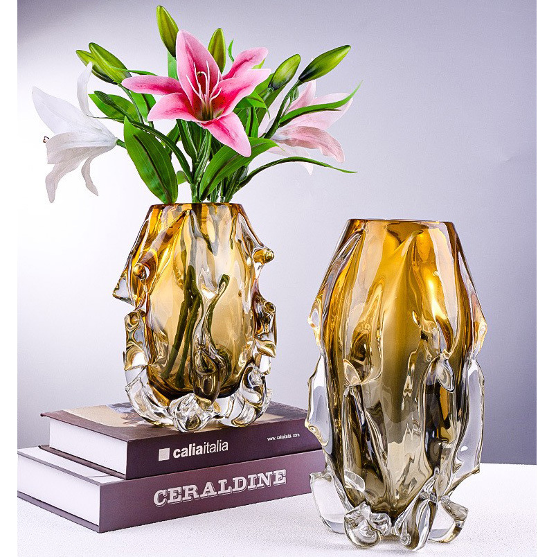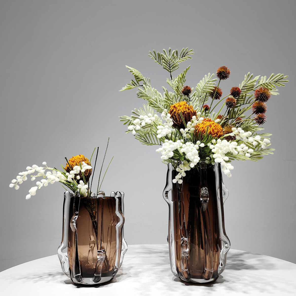 現代の軽い豪華な茶色のガラス花瓶生け花リビングテーブルバーの雰囲気