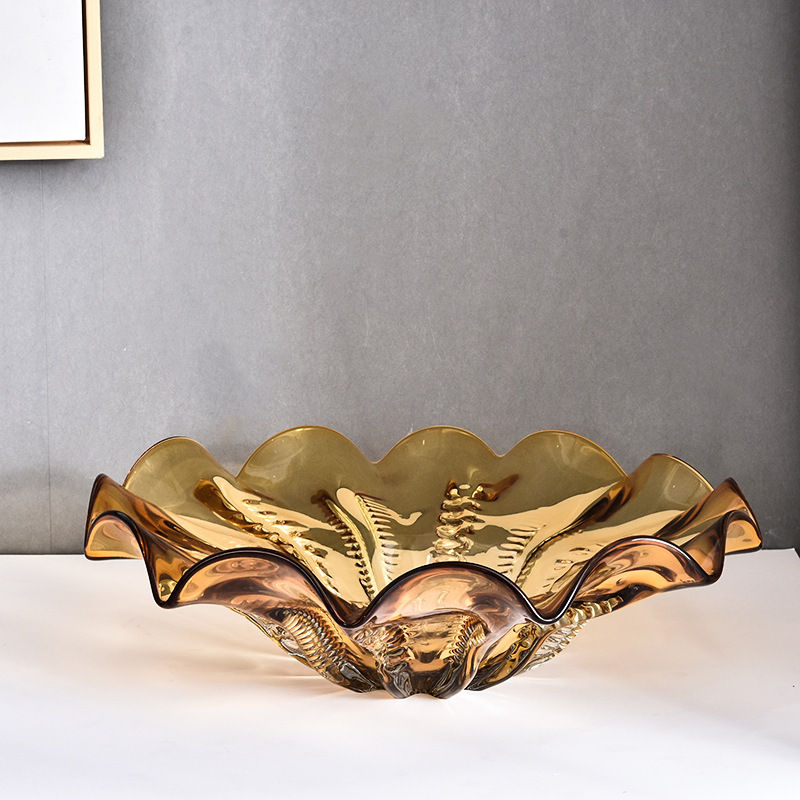 現代の軽い豪華なガラスの果物の皿のお茶のいくつかの装飾の果物の皿のキャンディーの皿の乾いた果物の皿の客間のテーブルのサンプルの間の置物