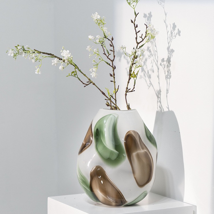 モダンなシンプルな混色の斑点瑠璃水培花瓶の装飾
