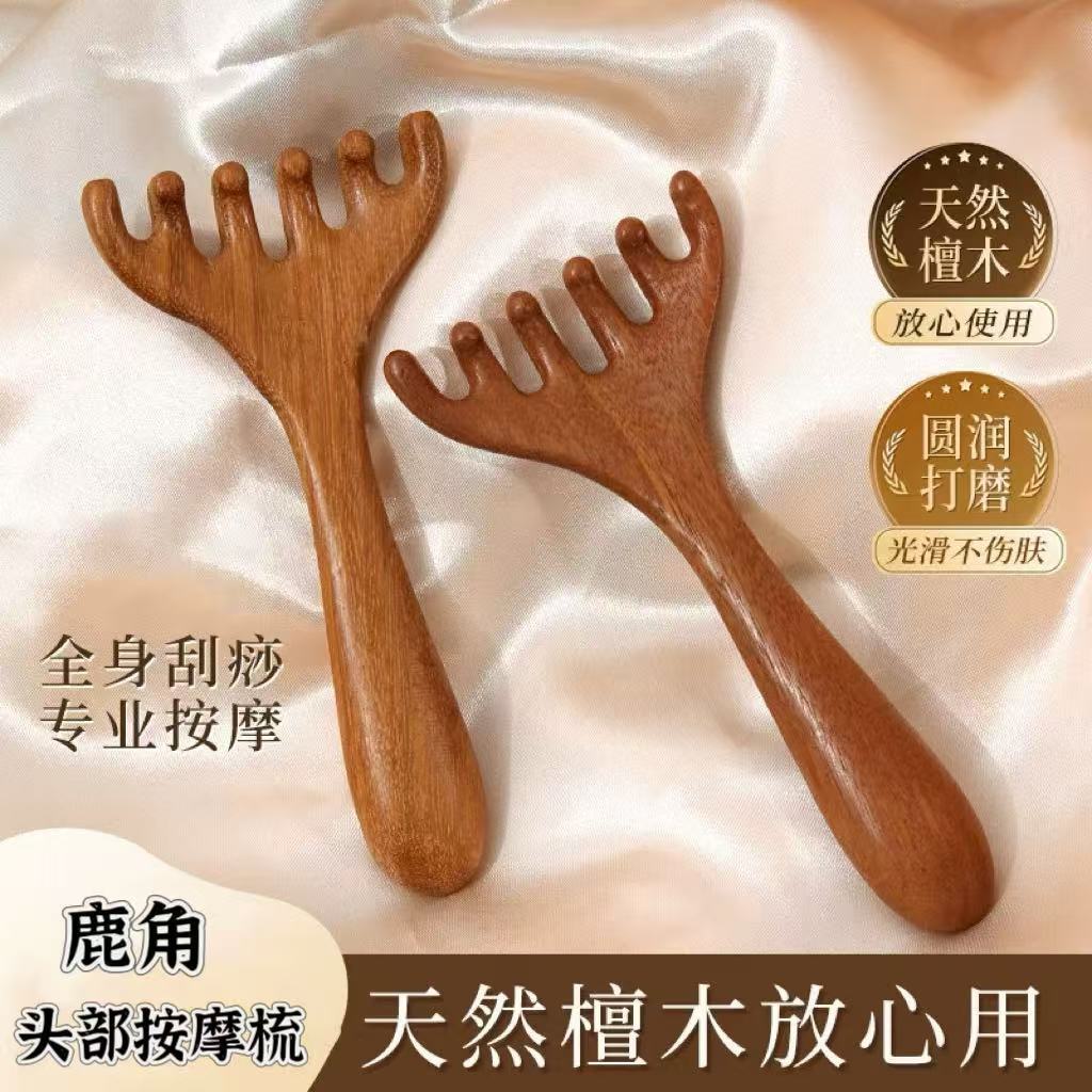 五歯マッサージ櫛檀木経絡櫛頭治療マッサージ掻爬疎通広歯櫛携帯型経絡櫛