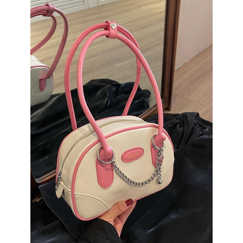 ファッショナブルなコントラストカラーの脇の下バッグ女性のための 2024 春夏の新しいシングルショルダーシェルバッグ多用途の質感のポータブル小さな枕バッグ