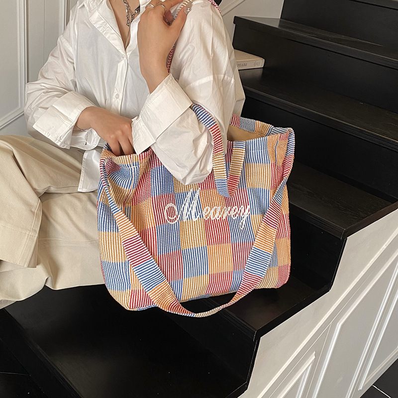大容量チェック柄クロスボディバッグ女性のための 2025 新しいトレンディな韓国語版通勤学生クラスショルダートートバッグ