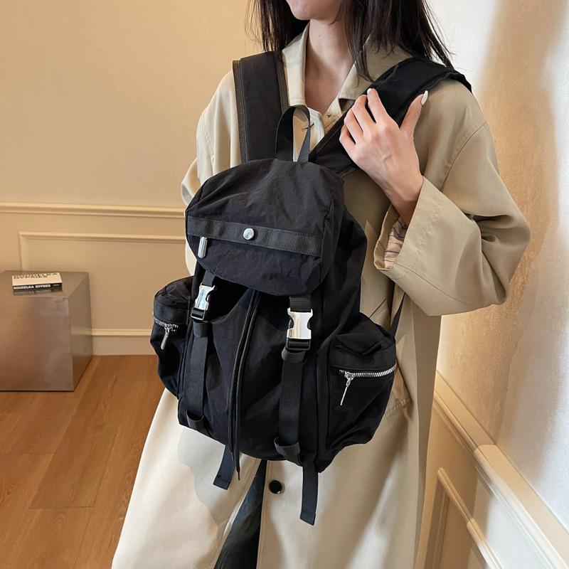 国境を越えた韓国版学院風ランドセルバッグ女性2024新型ファッションしわナイロン布カジュアルバッグ