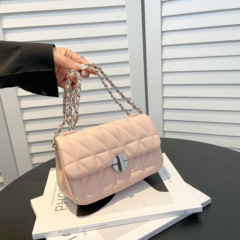 高級感菱格チェーン腋の下包2024新韓版潮百合通勤包片肩包小衆斜めバッグ