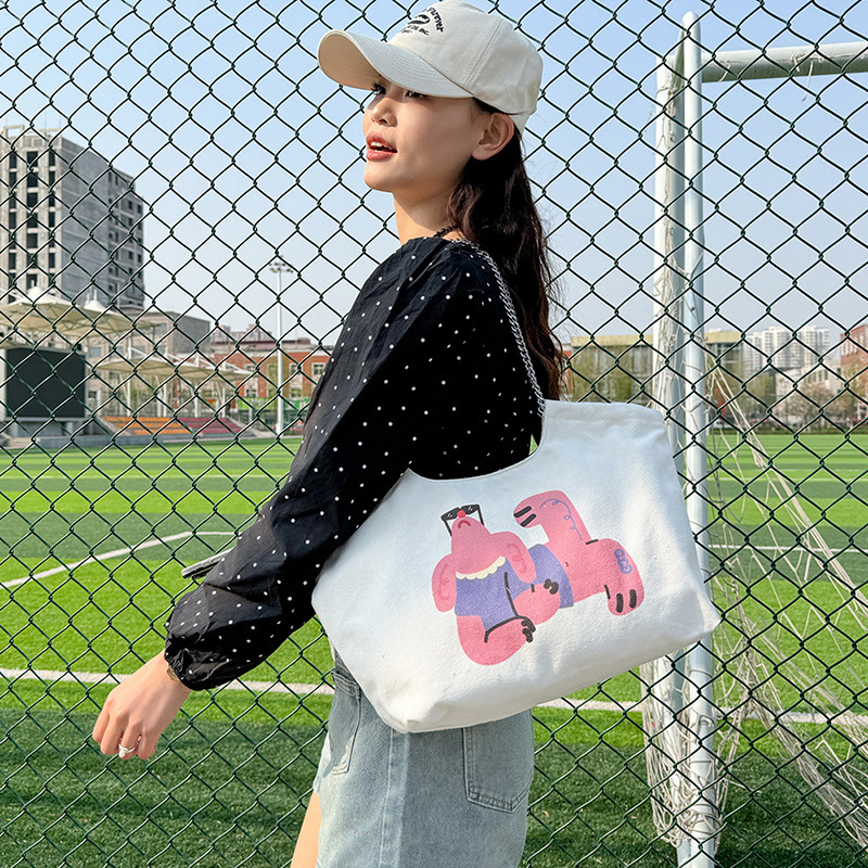 クロスボーダーチェーントートバッグ大容量キャンバスバッグ新型通勤ショルダーバッグシンプルなプリントファッション大衆バッグ