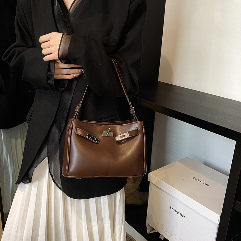 冬の新型高级感手持ちバケツバッグ2024レトロファッションカジュアルショルダーバッグ通勤斜めがけショルダーバッグ